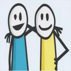 Two cartoon figures hold interlocking puzzle pieces, symbolizing Coinmama's platform to buy Bitcoin and crypto.