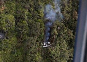 Tangkapan layar dari video yang diambil Basarnas menunjukkan badan pesawat SAM Air PK-SMW terbelah dan mengeluarkan asap.